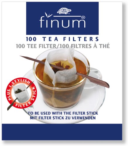 Finum Tea Filter cup size plus Stick Ideal for one tea cup finum filters are internationally renown. The variety of sizes give each tea enthusiast the chance to enjoy their tea in their individually preferred manner. Our oxygen bleached paper is famous for its unique true-flavor filtering qualities. They are chlorine free and biodegradable. The double-fold bottom of the filter provides the tea leaves enough room for their flavor to fully unfold. With a practical long fill-in-flap, which makes it easier to fill in your tea. The flap is also used to fix the filter at the rim of your tea pot by closing the lid. The new Filter Stick allows the filter to stay open, so that the tea lover may watch over the tea leaves as they unfold their aroma and color. A true visual enjoyment !