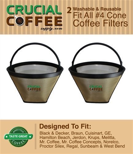 Buy 6 Washable & Reusable Coffee Filters # 4 Cone Fit Black & Decker, Braun, Cuisinart, GE, Hamilton Beach, Jerdon, Krups, Melitta, Mr. Coffee, Mr. Coffee Concepts, Norelco, Proctor Silex, Regal, Sunbeam & West Bend; Designed & Engineered by Crucial Coffee