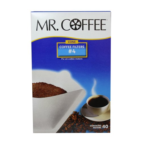 Stock up and make sure you don't run out of the most important part of your morning - a hot, fresh-brewed cup of coffee. Mr. Coffee #4 Cone Coffee Filters.Read more Mr. Coffee #4 Cone Filter Coffee Filters, White Paper, 40-Count Boxes (Pack of 12)