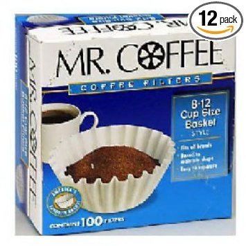Stock up and make sure you don't run out of the most important part of your morning - a hot, fresh-brewed cup of coffee. Mr. Coffee 8 inch / 8 to 12 Cup Basket Coffee Filters.Read more Mr. Coffee Basket Coffee Filters, 8-12 Cup, White Paper, 8-inch, 100-Count Boxes (Pack of 12)