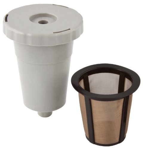 The Gold Tone 1-Kup Reusable Coffee Filter Starter Pack is convenient to use. It conserves natural resources and protects the environment while making a richer and more flavorful cup of coffee using your coffee of choice. Made of stainless steel, golden mesh, it saves up to 90% over K-Cups. It fits Keurig, Cuisinart, Mr. Coffee, and Breville Single Coffee Brewers and is easy to clean and dishwasher safe.