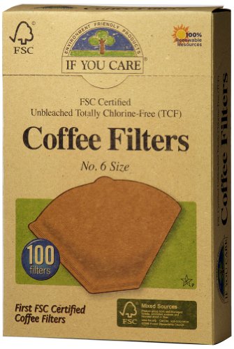 If You Care Unbleached Coffee Filters are made with paper from FSC certified wood coming from sustainably-managed forests. They are made from unbleached totally chlorine-free (TCF) paper. Since no chlorine or chlorine derivatives were used to produce these filters, no chlorine or chlorine derivatives get dumped into our lakes, rivers and streams.