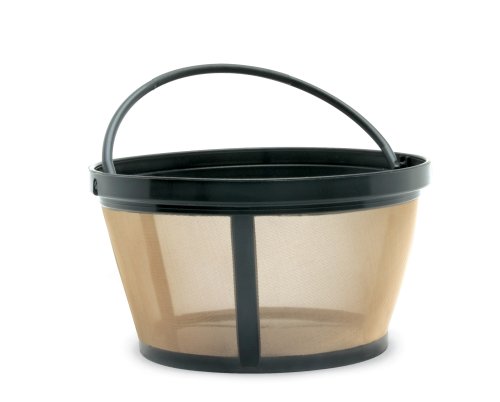 Eliminate the need for paper filters with Fresco’s Goldtone Basket Shaped Coffee filter. Made with stainless steel, this gold mesh filter is reusable and features handles for easy removal and clean disposal of coffee grounds. This golden mesh filter also enhances the flavor of your coffee! Fits most 8-12 cup flat bottom coffeemakers. Easy to clean and dishwasher safe.